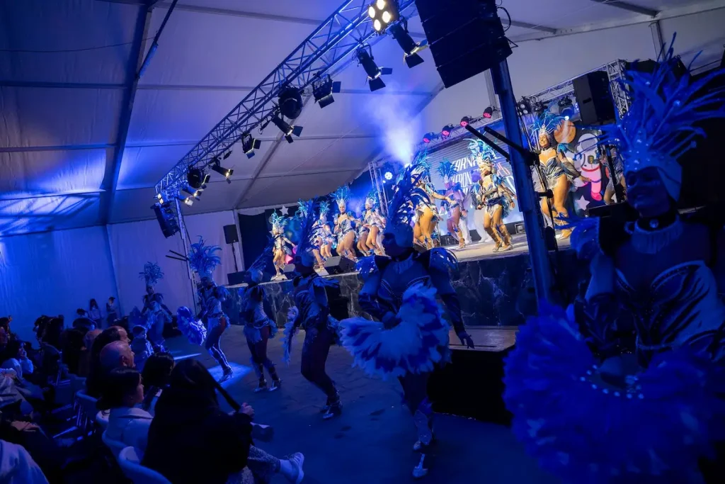 El espectáculo incluyó actuaciones de los grupos de baile de la Asociación Cultural Amador, dirigidos por Karina La Regina y Giovanna Correa, la batucada Tokina Tum Tum, la comparsa invitada Ritmos del Viento de Icod de los Vinos y el artista Neo Pinto, entre otros participantes.